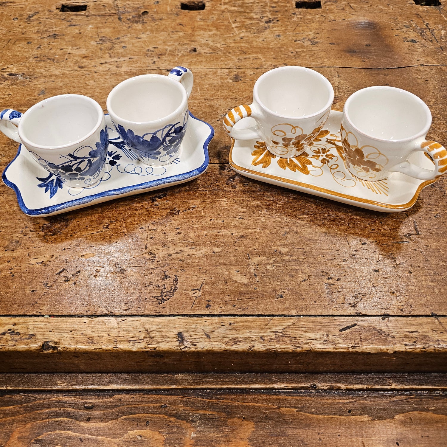 Coffee services with cups and tray in ceramic handmade by potters, vintage...